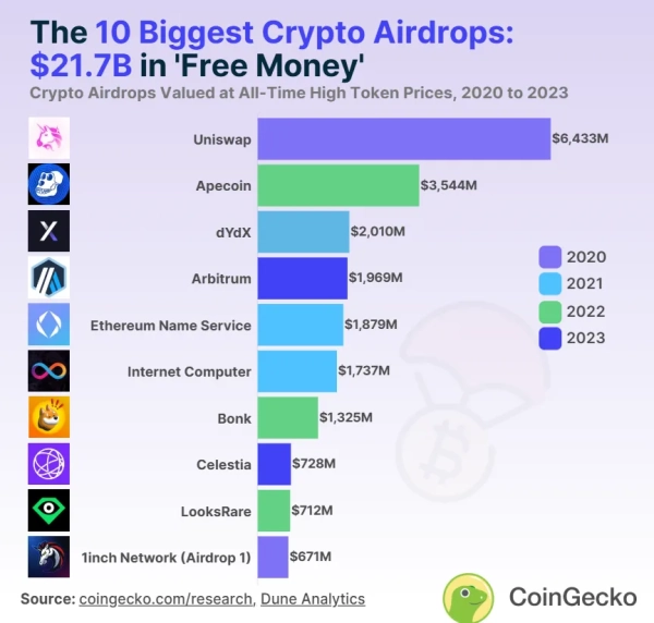 За обсягом коштів у доларовому еквіваленті аірдроп Lighter обійшов 1inch ($671 млн) і посів десяте місце у загальному рейтингу. Абсолютним лідером залишається Uniswap, який у 2020 році розподілив токени на $6,43 млрд.