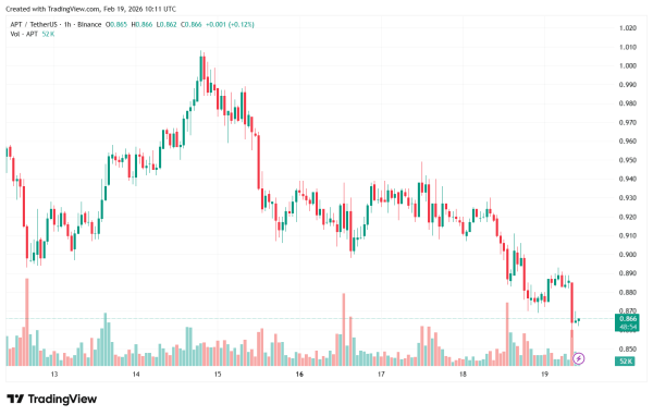 На тлі новини курс $APT просів на 1,6% на добовому графіку. На момент підготовки матеріалу актив торгується $0,86.