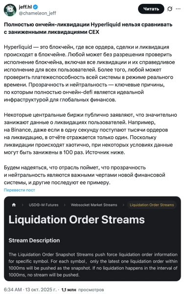 За словами Джефа Яна , генерального директора та співзасновника децентралізованої біржі Hyperliquid, деякі централізовані криптовалютні біржі можуть занижувати обсяги ліквідацій позицій користувачів. Це посилює побоювання інвесторів.