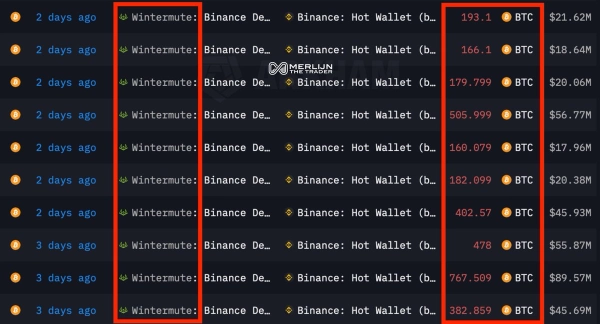Криптомаркет-мейкер Wintermute перевів близько $700 млн у біткоїнах на Binance лише за кілька годин до обвалу, повідомляє популярний криптоаналітик Merlijn The Trader.
