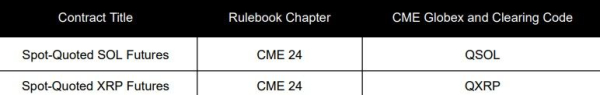 Спотові ф'ючерси, що котируються на SOL і спотові ф'ючерси, що котируються на XRP від CME. Джерело: CME Group