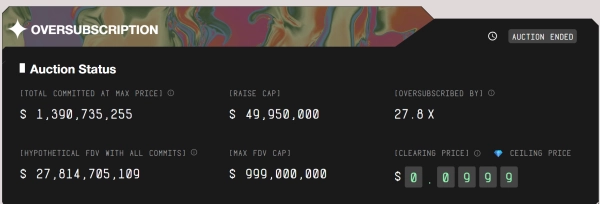 ICO становило 5% від загальної пропозиції в 10 млрд токенів з лімітом зборів трохи менше $50 млн. Тепер, коли аукціон завершено, для визначення частки кожного користувача буде використаний «спеціальний механізм розподілу», згідно з розділом питань, що часто ставляться.