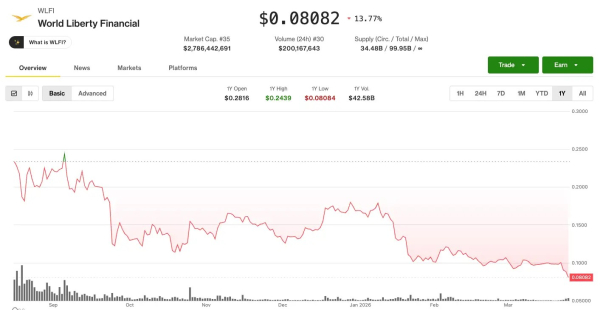 $WLFI досяг найнижчого рівня з моменту запуску у 2025 році.