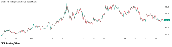 На початку листопада 2025 року Zcash відзначилася позитивною динамікою, що дозволило активу оновити багаторічний максимум. У моменті актив пробив позначку $743, але потім відкотився. На місячному чарті позиція, як і раніше, «у плюсі», на 55%.