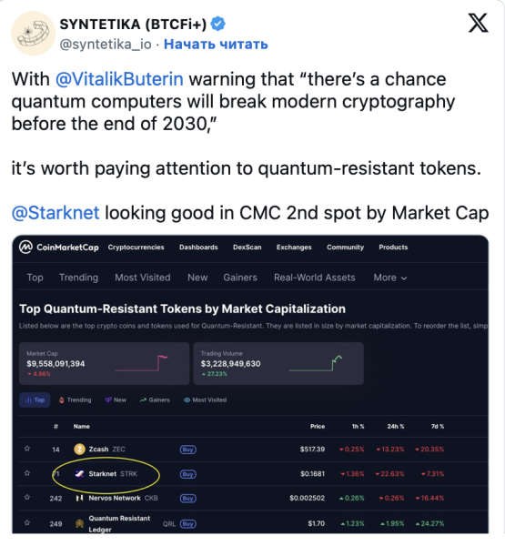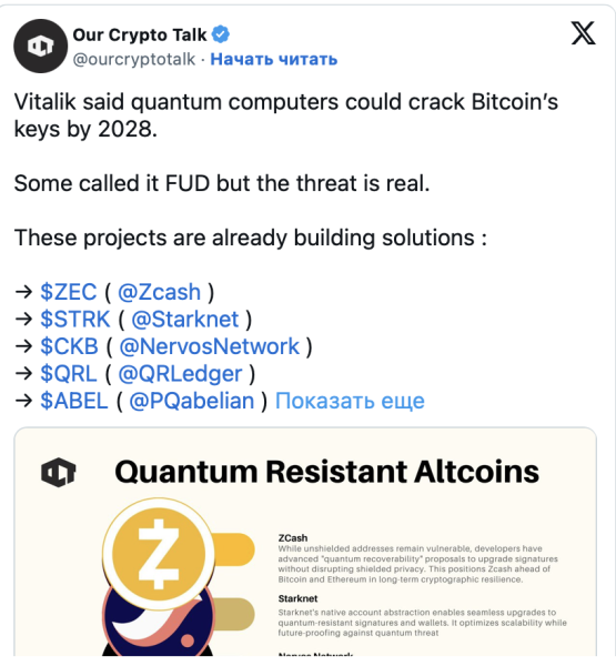 Увага інвесторів до спеціалізованих блокчейн-проектів різко зросла після заяв Віталіка Бутеріна. Співзасновник Ethereum зазначив загрози, які квантові обчислення створюють для поточних стандартів криптографічної безпеки.