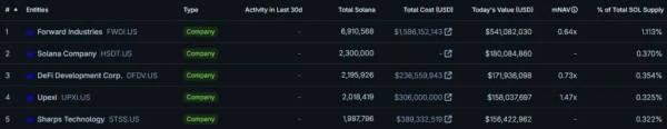 Згідно з CoinGecko, фірма володіє 2,3 млн $ SOL , що робить її другим за величиною корпоративним власником активу.