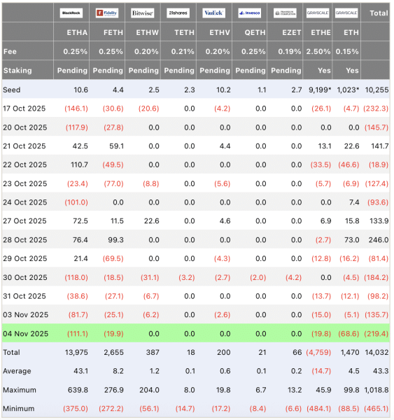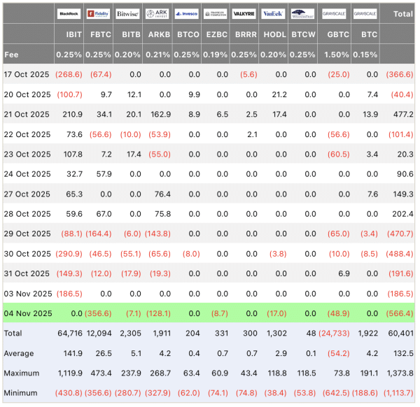Сумарно біткоїн і Ethereum-ETF втратили близько $800 млн тільки за 4 листопада, що відображає обережність інституційних інвесторів, що зростає.