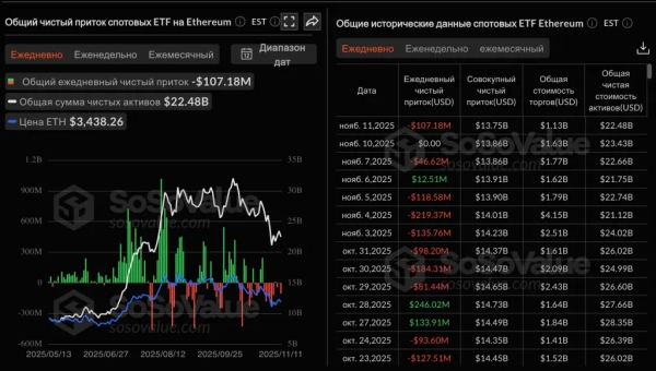 Біржові фонди на основі Ethereum зафіксували відтік у розмірі $107 млн. ETH від Grayscale втратив $75 млн, а ETHA від BlackRock – $19 млн.