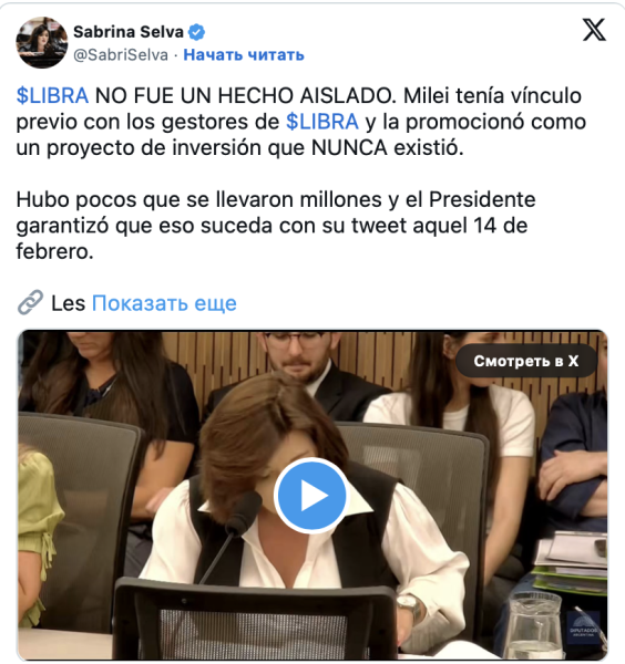 Депутат Сабріна Сельва підтримала цей висновок. Вона наголосила, що LIBRA ніколи не була реальним інвестиційним проектом. Це була скоординована операція для збагачення групи осіб.