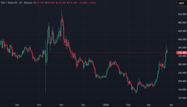 Токен $TAO від проекту Bittensor продемонстрував стрімке зростання. Актив подорожчав приблизно на 150% із середини лютого 2026 року (приблизно за 40 днів). На момент написання $TAO торгується поблизу позначки $340: