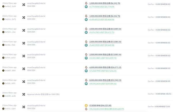 Трейдер купив 28,2 млн 恶俗企鹅 у момент лістингу, витративши 53,8 BNB на суму близько $46 300. Через кілька хвилин він продав 27,2 млн монет приблизно за $148 000 у USDT. На його гаманці залишилося близько 1 млн токенів вартістю приблизно $7500.