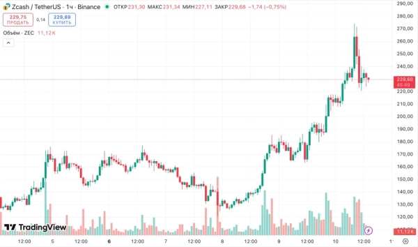 За останні два тижні курс анонімної криптовалюти Zcash зріс на понад 325%. 10 жовтня ціна ZEC досягла $230 уперше з 2022 року.
