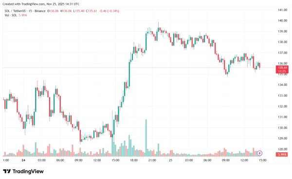 За останній місяць ціна SOL впала на 31,7% до $135,61.