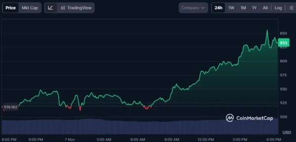 Дані CoinMarketCap показують, що Zcash досяг максимуму в $655 раніше в п'ятницю, а його ринкова капіталізація досягла близько $10,6 млрд. На момент написання статті ралі трохи охолонуло і відкотилося до $632, що дає йому капіталізацію в $10,3 млрд і позиціонує його як 12-й за величиною.