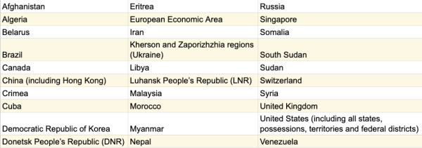 Де сервіс не буде доступним. Джерело: MetaMask.