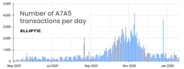 A7A5 запустили у січні 2025 року як стейблкоїн із прив'язкою до рубля. За даними Elliptic, проект пов'язаний із компанією A7 LLC, яка обслуговує транскордонні розрахунки російського бізнесу за умов санкцій. Формальним емітентом токена вказана Old Vector LLC з Киргизстану, а забезпечення заявлено карбованцевими коштами, розміщеними в Промзв'язку банку.