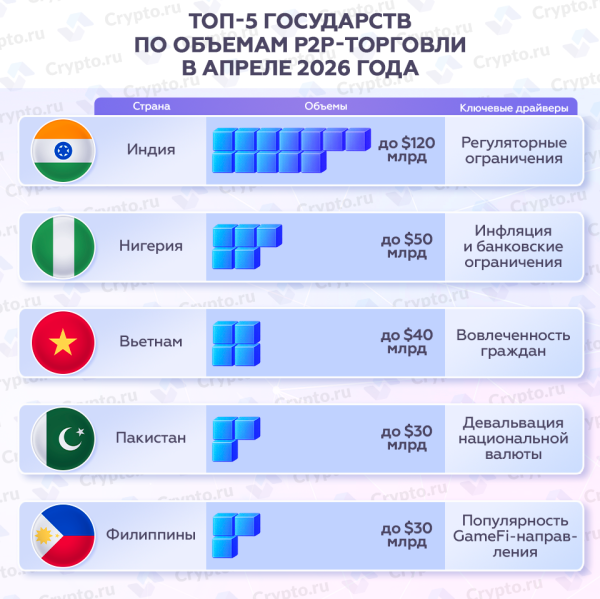Топ-5 держав за обсягами P2P-торгівлі у квітні 2026 року