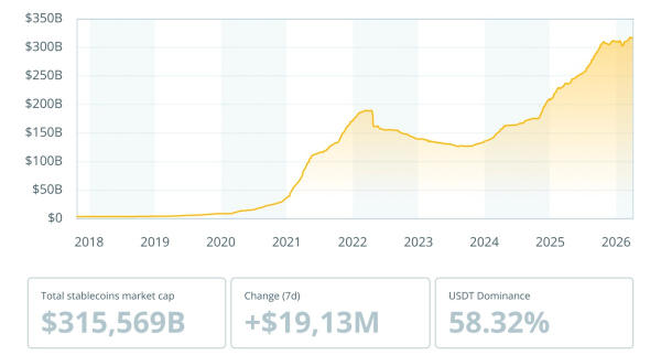 Капіталізація ринку стейблкоїнів з 2018 до березня 2026 року. Джерело: DefiLlama