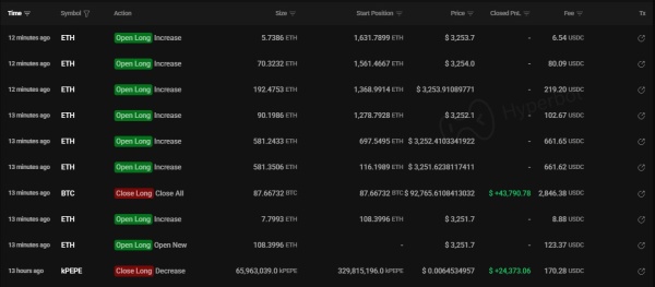 Трейдер фіксує прибуток у BTC і робить ставку на другу по капіталізації криптовалюту, очікуючи на сильніший імпульс від Ethereum. Мемкоїн PEPE залишається в портфелі як найбільш волатильний інструмент для агресивної маржинальної торгівлі.