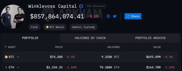 Портфель Winklevoss Capital. Джерело: Arkham Intelligence.