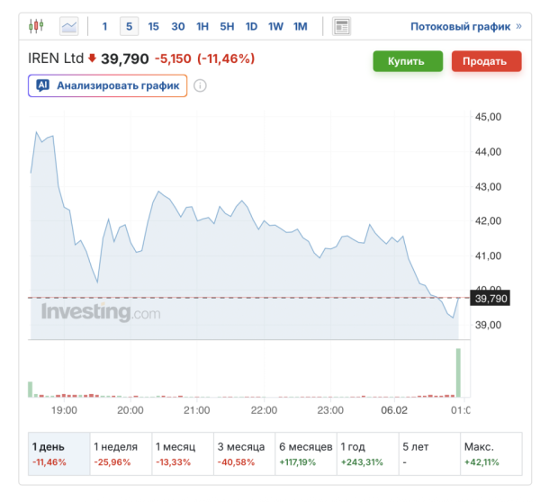 Акції майнінгової компанії IREN впали на 11,46% в основній торговій сесії, а після її завершення втратили ще 18,5%, опустившись до $32,42. За останній квартал 2025 року виручка компанії склала $184,69 млн, що на 16,49% нижче за прогнози. Чистий збиток досяг $155,4 млн, і це контрастує з прибутком $384,6 млн за аналогічний період 2024 року. IREN також зголосилася перейти з майнінгу на ІІ.