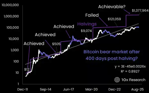 У 10x Research сумніваються у надійності теорії ціни ВТС, що базується на чотирирічних циклах. За словами експертів компанії, біткоїн існує всього 16 років, і робити «однозначні статистичні висновки» з чотирьох минулих періодів «дуже сумнівно», незважаючи на велику кількість думок і даних у мережі.