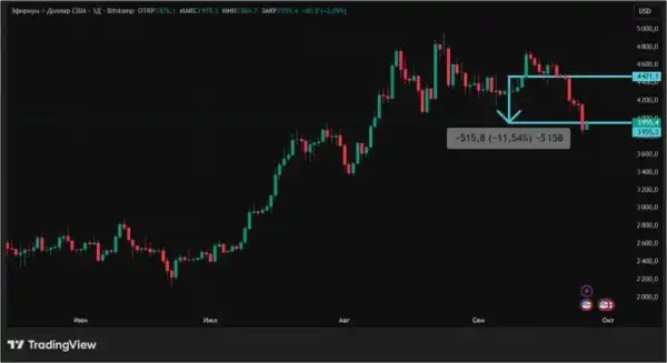 Однією з основних причин зниження ефіру стали примусове закриття позицій трейдерів, що почастішало, особливо лонгових. У понеділок, 22 вересня, та у четвер, 25 вересня, обсяг ліквідацій перевищив $400 млн — рекорд за півроку.