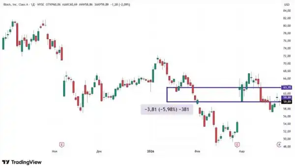 Шосте місце займає платіжний сервіс Block (колишній Square) з ринковою капіталізацією $36,39 млрд. Компанія не лише надає клієнтам можливість оплачувати товари та послуги через свої додатки, а й інвестує у біткоїн. У березні акції Block втратили майже 6% від вартості. На інвесторів тиснув зростання цін на енергоносії, викликане близькосхідною війною. Інвестори неоднозначно оцінили заяву генерального директора Block Джека Дорсі (Jack Dorsey) щодо скорочення кадрового складу на 40% — заради заміни штучним інтелектом.