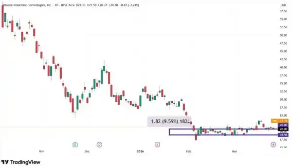 Сьоме місце у володаря найбільшого резерву ефіру компанії BitMine Immersion Technologies, ринкова капіталізація якої = $9,46 млрд. У компанії є також запас BTC, який на кінець березня дорівнює 196 коинам. Березнева динаміка акцій BMNR виявилася найкращою серед усіх компаній представленого топу. Зростання склало 9,59%. Основною причиною стало подорожчання ETH у березні на 11%. Щоправда, говорити про якесь ралі не доводиться. Акції BMNR другий місяць торгуються у широкому каналі.