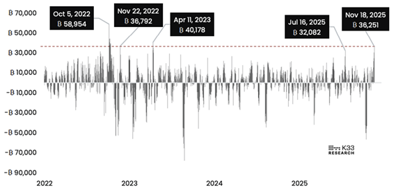 У K33 Research відзначили тривожний розрив: доки одні інвестори активно спекулюють, інституційні гравці виявляють обережність і не вірять у зростання монети. За даними експертів, у 86% випадків подібна ситуація призводила до падіння ціни монети в середньому на 16% наступного місяця.