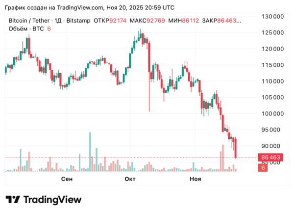 Обвал курсу біткоїну нижче за $86 400 ознаменував нову фазу «великого краху криптовалют 2025 року», заявили аналітики інформаційно-аналітичного агентства Bloomberg.