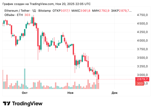 Наслідки для галузі виявилися відчутними: ефір минулої доби втратив близько 4% від первісної вартості і опустився нижче за $3000 за монету. Ще 65 зі 100 провідних криптоактивів також продемонстрували зниження вартості за добу від 2% до 17%.