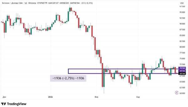 Біткоїн з 20 по 27 березня 2026 року знизився в ціні на 2,75%. Перша криптовалюта знову торгується нижче за важливу психологічну позначку $70 000. Більшість торгових сесій, п'ять із семи, виявилася для біткоїна на тижні в мінусі.