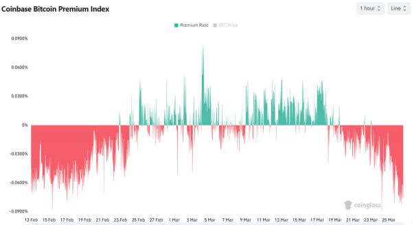 Індикатор Coinbase Premium, який характеризує різницю настроїв користувачів найбільшої американської криптобіржі та тих, хто надає перевагу її офшорному конкуренту, Binance, майже весь тиждень, за рідкісними винятками, залишався негативним. Зазвичай під час бичачого тренду корпоративні інвестори зі США виявляють більший інтерес до цифрових активів, ніж криптоентузіасти в інших куточках світу. Наприклад, така картина спостерігалася у 2024 році. На березень 2026-го ситуація обернена: вона показує небажання американського капіталу активно вкладатися в біткоїн. Інакше кажучи, спостерігається переважання ведмежих тенденцій.