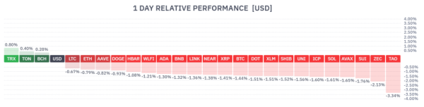 Tron з 20 по 27 березня додав 0,75%. Це єдина криптовалюта з топ-10 із капіталізації, яка показала зростання минулого тижня. Щоправда, волатильність залишається не високою: за підсумками жодна із торгових сесій не змінила ціну більш ніж на 3%.