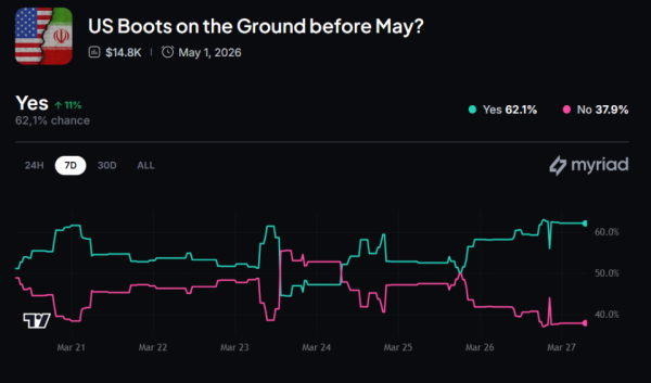 Дедалі більше новин про реальність американської наземної операції. На платформі Myriad, яка функціонує як децентралізований ринок пророцтв, ймовірність розгортання військ США на іранській землі до 1 травня перевищує 60%. Така турбулентна ситуація не може не викликати перепадів настрою криптоінвесторів.