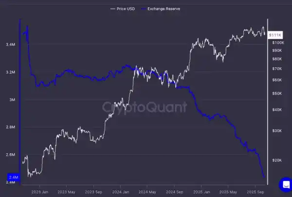 З 2018 року резерви біткоїну на централізованих криптобіржах зменшилися на 1,5 млн. BTC і тепер ледве перевищують 2,4 млн. монет. На думку експертів CryptoQuant, це відображає загальну тенденцію виведення коштів у холодні сховища для довгострокового зберігання — що може бути викликане зростаючим інтересом інвесторів до самостійного зберігання біткоїну поза біржами.