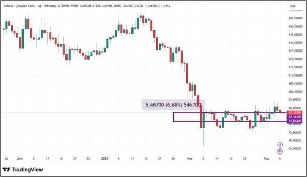 Вартість Solana з 27 лютого до 6 березня зросла на 6,68%. Другий тиждень поспіль SOL демонструє позитивну динаміку. 4 і 5 березня вперше за півтора місяці ця криптовалюта змогла впритул підібратися до $95. Щоправда, утриматися біля цього значення поки що не вдалося.