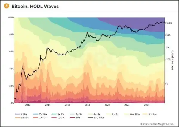 Станом на жовтень 2025 року в обігу перебуває майже 20 млн BTC. Одні монети утримуються власниками роками, інші – лічені дні. Графічним інструментом візуалізації того, як довго зберігаються біткоїни, є «хвилі ходлерів».
