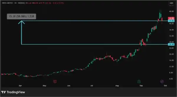 На сьомому місці розташувалася компанія з Сіднея IREN, яка займається майнінгом та розвитком дата-центрів з ринковою капіталізацією $11,38 млрд. У вересні 2025 року її акції продовжили вибухове зростання, яке склало 58,08%. Основною причиною такого розвитку подій стало масове партнерство великих компаній із організаціями, що надають інфраструктуру дата-центрів. На початку місяця з'явилася новина про колаборацію Microsoft із Nebius Group, а наприкінці — про домовленості Nvidia із OpenAI. Безпосередньо IREN ці новини не торкнулися. Проте інтерес великого капіталу до організацій з її галузі привернув увагу інвесторів і до акцій цієї австралійської компанії.