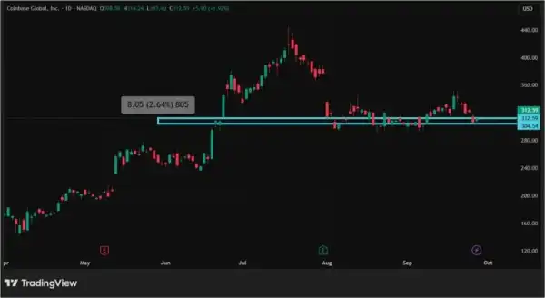 Третє місце посідає криптобіржа Coinbase із ринковою капіталізацією $80,31 млрд. Її акції у вересні 2025 року зросли на 2,64%. Як і багато інших компаній зі списку, Coinbase показувала зростання до оголошення рішення про ставку. Після цього почалося зниження. Багато в чому воно було пов'язане з масовими ліквідаціями в криптовалюті, які вплинули на ставлення трейдерів і до акцій криптокомпаній.