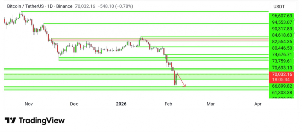 «Доки біткоїн не закриється вище і не відвоює цю зону, ми очікуємо корекції від поточних рівнів. Ми розглянемо сценарій зростання, принаймні в короткостроковій перспективі, тільки якщо він закриється вище за $71 000», — пояснив аналітик.