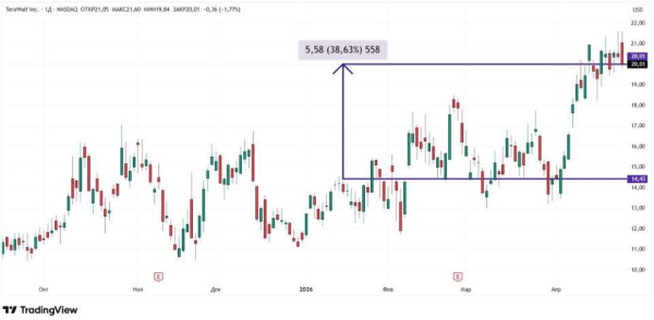 Виробник електромобілів і за сумісництвом один із найбільших власників біткоїну, автогігант Tesla займає перше місце з ринковою капіталізацією $1,413 трлн. Акції компанії у квітні показали скромне зростання 1,22%. Основним фактором динаміки став неоднозначний фінансовий звіт за перший квартал 2026 року. З одного боку, майже всі основні показники зросли: загальний виторг на 16%, чистий прибуток на 17%. З іншого боку, продажі автомобілів впали по відношенню до четвертого кварталу 2025 року на 14%. Плюс зростання виручки виявилося нижчим за консенсус-прогноз.