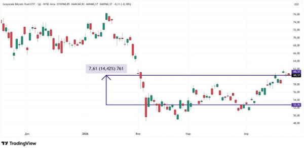 Шосте місце дістається спотовому ETF компанії Grayscale, Grayscale Bitcoin Trust, ринкова капіталізація якого – $41,79 млрд. У квітні його акції (паї) зросли на 14,42%. З огляду на те, що фонд займається інвестиційною діяльністю, головна причина: збільшення вартості активу, біткоїну. Разом з тим, ось уже 28 місяців поспіль триває відплив капіталу з GBTC. За місяць інвестори вивели із фонду компанії Grayscale $204,93 млн, що стало найбільшою сумою з січня.