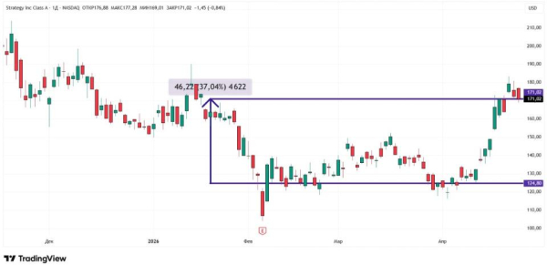 Другий у списку найбільших криптокомпаній значиться власник найбільшого резерву біткоїнів — Strategy (колишня MicroStrategy) із ринковою капіталізацією $59,67 млрд. У квітні її акції зросли на 37,04%. Як і у випадку з GBTC, це пояснюється зростанням вартості першої криптовалюти. Strategy продовжує активно накопичувати $BTC . У квітні запас поповнився на 34 164 $BTC вартістю $2,54 млрд. Сукупний обсяг криптовалюти на рахунку Strategy перевищив позначку 815 000 $BTC .