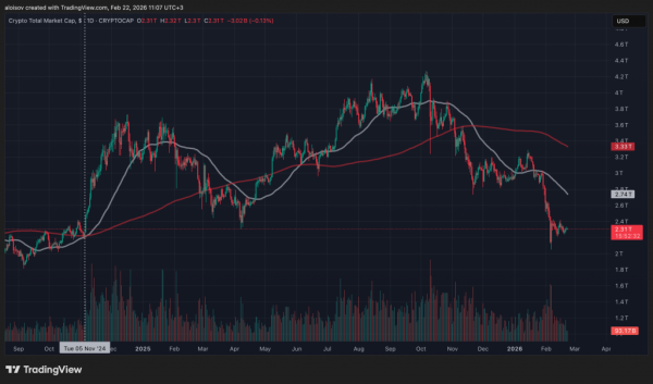 Після грудневого максимуму ринок скоригувався до діапазону $900 млрд, потім ненадовго відновився до $1,13 трлн 18 січня 2025 року – за два дні до інавгурації Трампа. Більшість 2025 року котирування торгувалися в боковику, поки в жовтні Total3 не досяг нового піку — близько $1,19 трлн. Саме тоді обвал ринку зламав висхідний тренд, і з того часу переконливого відновлення так і не було.