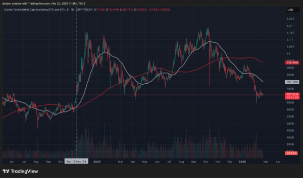 Індикатор Total3 Market Cap, що відображає сумарну капіталізацію крипторинка без урахування біткоїну та Ethereum, злетів на 91% після виборів 5 листопада 2024 року — приблизно з $600 млрд до $1,16 трлн до грудня того ж року. Зараз показник опустився до $713 млрд: саме стільки ринок важив 10 листопада 2024-го, на піку післявиборної ейфорії.
