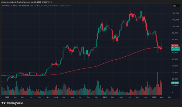1-тижневий графік $BTC /USD та 200EMA. Джерело: Bitstamp