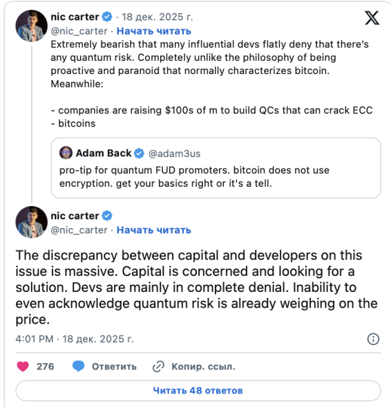 Дискусія показує наростаючу суперечність між інвесторами та розробниками. Нік Картер, партнер Castle Island Ventures, висловив суть суперечки у своєму грудневому посту.