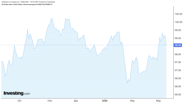 На валютному ринку спостерігалася традиційна для періодів ескалації динаміка: інвестори йшли у захисні активи. Підвищений попит на долар призвів до зростання індексу DXY, яке 5 березня піднімалося до позначки 109 пунктів.